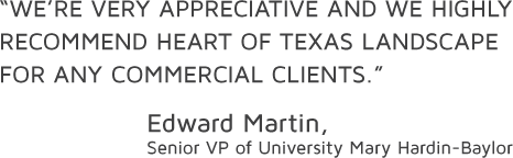 Heart of Texas Landscape and Irrigation has been servicing the central Texas community since 1989. We strive to be the very best landscaping company available. We offer some of the best quality services at the best prices. Here, at Heart of Texas Landscape and Irrigation, we believe in building strong long lasting relationships, both with our customers and with our staff. This dedication and commitment to relationships can be exemplified in the customers who have been with us for over ten years and the fact that our very first employee is still with the company today.